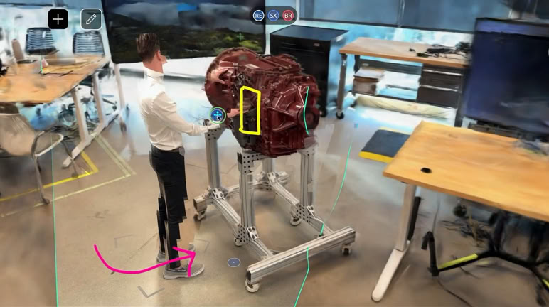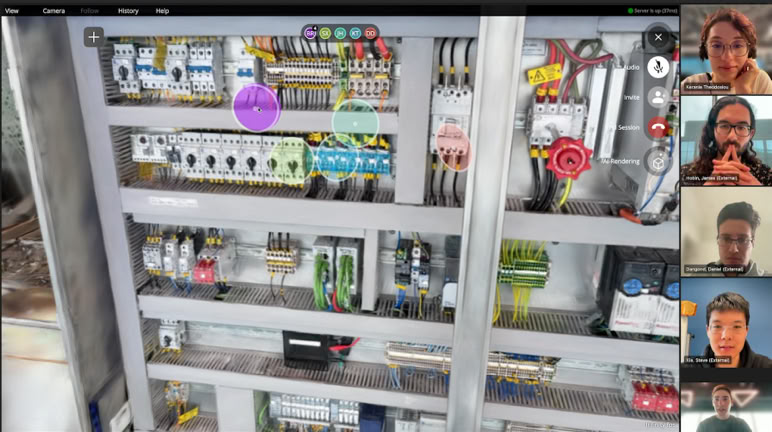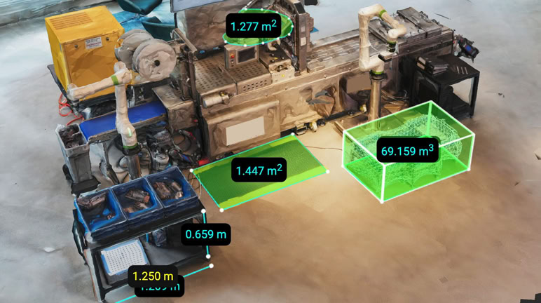 This baseline record serves as the foundation of an intuitive, collaborative workspace accessible via web browser or directly within Microsoft Teams, allowing users to explore and interact with spaces together remotely. Within this environment, multiple specialized spatial applications can be used simultaneously in the multi-tasking interface to tackle real-world problems. For example, the motion analytics application enables you to record and analyze work processes directly within the spatial context, while the measurement application enables you to take accurate virtual measurements about the work process. Additionally, the platform seamlessly integrates IoT and robotic systems, bridging your virtual workspace with the physical world. Our data model coherently organizes every feature of the space from its initial capture to any insights generated by spatial applications. This organization empowers spatial AI systems to understand and interact with these data, supporting more informed and effective decisions.